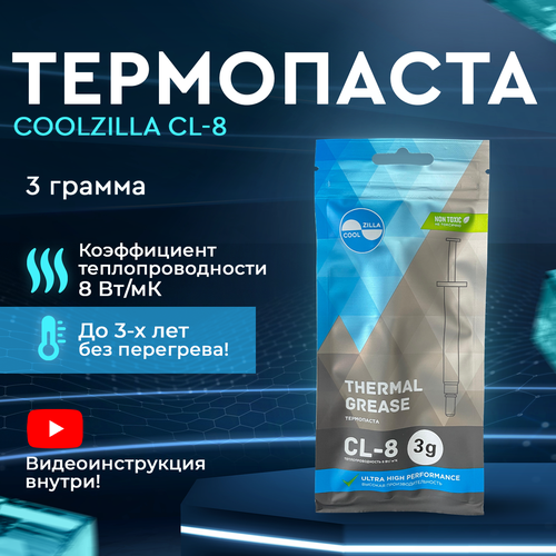 Найти - Термопаста Coolzila CL-8 для ПК/ноутбуков/видеокарт, 3гр, 8вт/мК (с лопаткой)