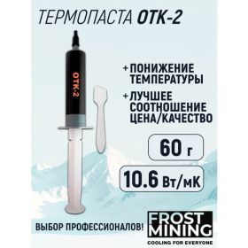 Термопаста OTK-2 от компании FrostMining имеет теплопроводность 10.6Вт/мК. Универсальное