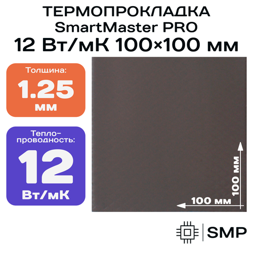 Найти - Термопрокладка 1.25 мм 12 Вт/мК SmartMaster PRO 100x100мм для видеокарты, ноутбука, консоли, ссд, асика, компьютера.