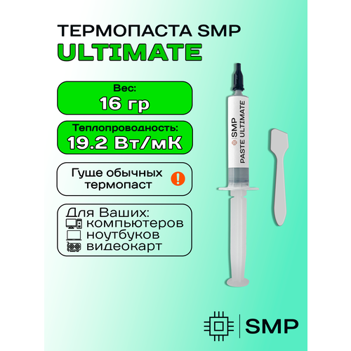 Найти - Термопаста SMP-ULTIMATE 19.2 Вт/мК 16г. для процессора, GPU, CPU, видеокарты, ноутбука, консоли, асика, светодиодов SmartMaster PRO