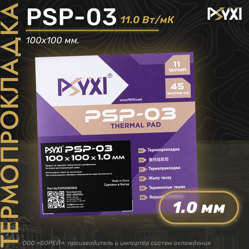 Найти - Термопрокладка PSYXI PSP-03: 11 Вт/мК; 100 х 100 х 1.0 мм; 1 шт.