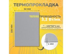 Термопрокладка теплопроводящая, термо подложка 3kS, 3,2 Вт/мK, 50х100мм, толщина 1,0мм (сер.) 102685684573