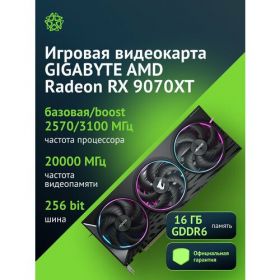 Видеокарта Gigabyte GV-R9070XT AORUS E-16GD 1.0 представляет собой высокопроизводительное решение для геймеров и профессионалов в области графики. Она оснащена мощным процессором AMD Radeon RX 9070XT с частотой 2570 МГц и объемом видеопамяти 16 ГБ, что обеспечивает высокую скорость обработки графики и плавную работу даже в самых требовательных играх и приложениях.