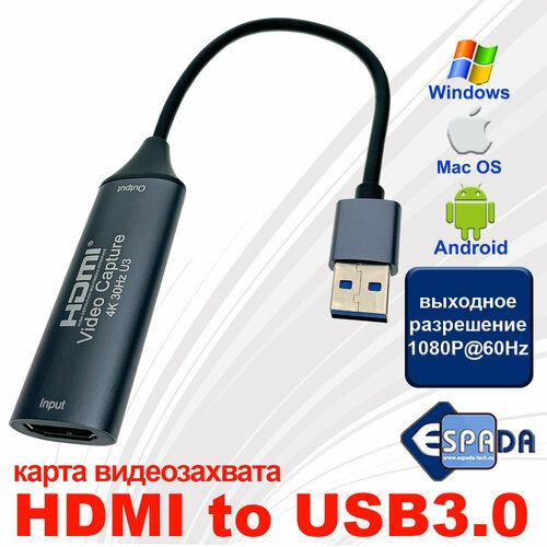 Найти - Карта видеозахвата HDMI to USB3.0, 1080P@60Hz чипсет MS2130, модель EVihu3, Espada