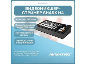 Видеомикшер-стример AVMATRIX Shark H4 компактный 4CH HDMI USB LAN для онлайн трансляций, стриминга, пульт, с дисплеем 4371942515