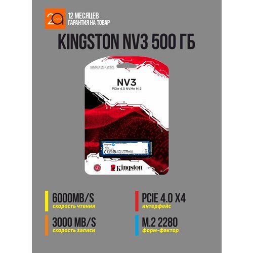 НАЙТИ ВЫГОДНЕЕ - Накопитель SSD Kingston NV3 500 Гб M.2 2280, PCIe 4.0 x4, NVMe