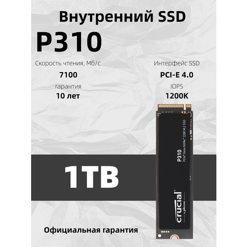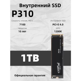 Встроенный твердотельный накопитель Crucial P310 1TB - это идеальное решение для тех, кто хочет ускорить работу своего компьютера. Этот SSD оснащен интерфейсом M.2 (NVMe PCIe4.0*4), который обеспечивает высокую скорость передачи данных до 7100 МБ/с. Это значит, что вы сможете быстро загружать операционную систему, запускать приложения и работать с файлами без долгих ожиданий.