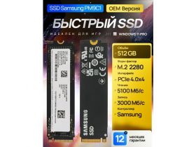 Накопитель SSD Samsung 512 ГБ M.2 PM9С1, PCIe Gen 4.0 x4, NVMe (чтение - 5100 Мб/с, запись - 3000 Мб/с), OEM 4313797614