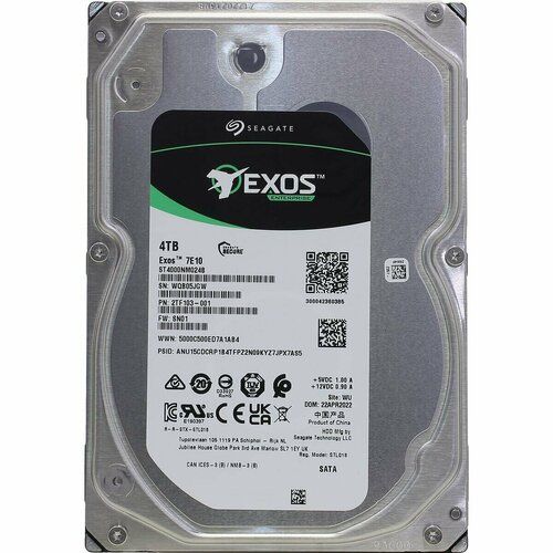 HDD для серверов и ЦОД (центров обработки данных, дата-центров) Объем: 4000Гб, 7200 оборотов / мин Формат: 3.5" SATA 6Gb / s (SATA-III) Буфер: 256 Мб 24x7 Поддержка NCQ