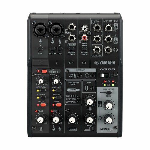 Внешняя звуковая карта Yamaha AG06MK2 black - это профессиональное решение для записи пения вживую с помощью микшера.