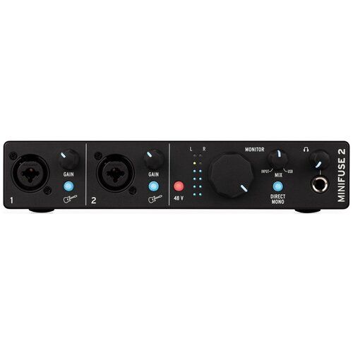Аудиоинтерфейс USB [800102] Arturia [MiniFuse 2 Black] 24бит/192кГц, два комбинированных входа XLR-1/4” (микрофонный / линейный / инструментальный уровень) с фантомным питанием +48 В, выходы на монитор (L/R Jack), выход для наушников, MIDI In/Out