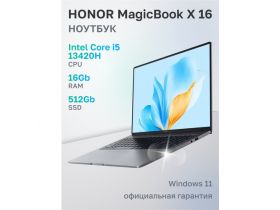 Ноутбук HONOR MagicBook X 16 Intel Core i5-12450H, 16ГБ, 512ГБ, Intel UHD Graphics, 16 1920x1200 60Гц IPS, Windows 11 Home (5301ALWS) 4355547290