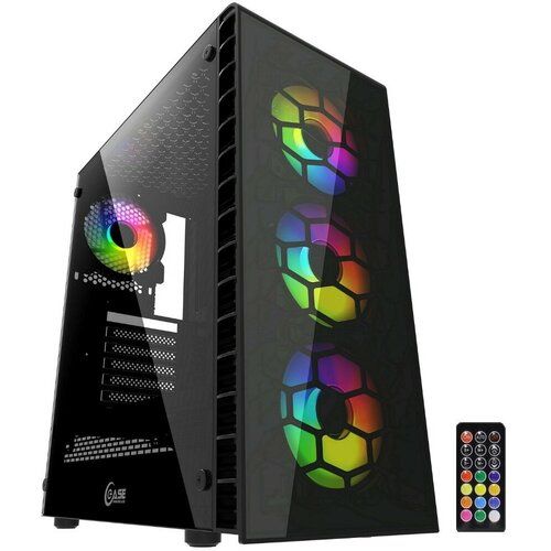 Компактный и стильный дизайн корпуса компьютера выполнен в чёрном цвете и имеет типоразмер Midi-Tower, оснащён USB3.0 и USB 2.0, стерео джек 3.5мм разъёмами на передней панели, тихим надёжным блоком питания. Прозрачная передняя панель и боковая стенка из затемнённого закалённого стекла.