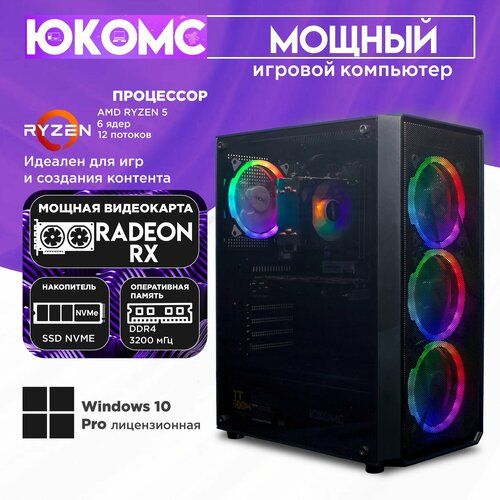 НАЙТИ ВЫГОДНЕЕ - Игровой PC юкомс Ryzen 5 5500, RX 6400 4GB, SSD 120GB, 16GB DDR4, БП 450W, win 10 pro, Black game case