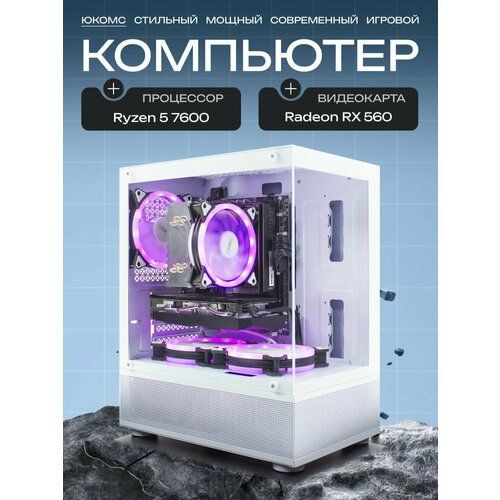 НАЙТИ ВЫГОДНЕЕ - Игровой PC юкомс Ryzen 5 7600, RX 560 4GB, SSD 256GB, 16GB DDR5, БП 500W, win 10 pro, White cube case