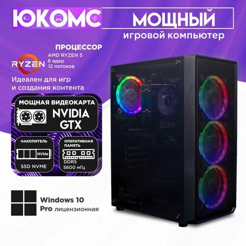 НАЙТИ ВЫГОДНЕЕ - Игровой PC юкомс Ryzen 5 7500F, GTX 1650 Super 4GB, SSD 120GB, 16GB DDR5, БП 450W, win 10 pro, Black game case