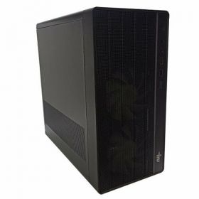 Системный блок собран в черном корпусе Midi Tower c перфорированной лицевой панелью, оснащенной 6-цветной регулируемой подсветкой, которая работает синхронно с LED-подсветкой двух фронтальных вентиляторов. При желании иллюминацию можно отключить. На переднюю панель также вынесены два разъема USB 2.0, один USB 3.0, которые можно использовать для подключения геймпадов, и выход для подключения наушников.