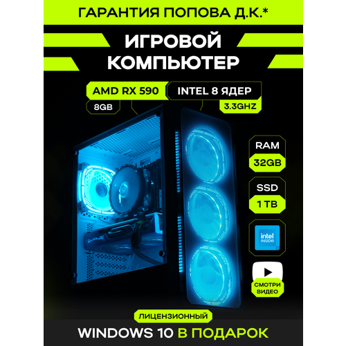 Игровой ПК для игр и работы в тяжёлых программах с премиальной гарантией. Установлен Windows 10 Pro и все необходимые драйвера. ПК готов к работе сразу из коробки, остаётся лишь подключить монитор (с DisplayPort, HDMI или DVI-D портом), клавиатуру и мышь.