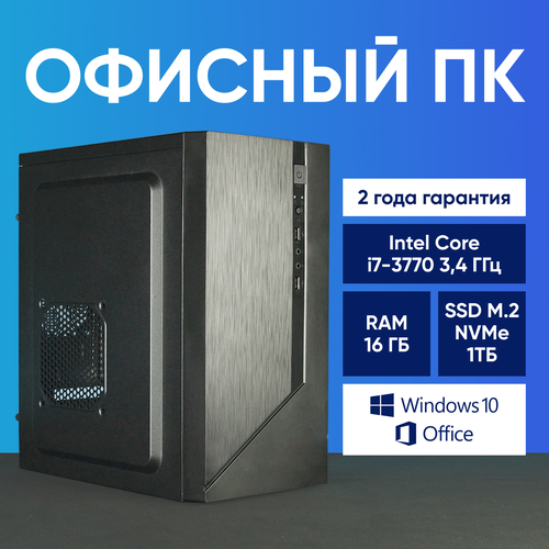 Найти - Системный блок Компьютер офисный ПК (Intel Core i7-3770 (3.4 ГГц), RAM 16 ГБ, SSD 1000 ГБ, Windows 10), чёрный матовый