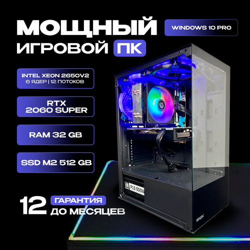 Игровой компьютер, системный блок (Intel Core Xeon 2650v2 / RTX 2060 SUPER 8GB / 32GB RAM / SSD m.2 500GB), создан для погружения в мир игр и киберспорта. Эта модель, оснащенная процессором Intel Core Xeon 2650v2, видеокартой RTX 2060 SUPER 8GB и 32GB памяти, способна расширить ваши творческие возможности и повысить производительность работы. SSD-накопитель обеспечивает высокую скорость чтения и записи файлов, а также отзывчивость операционной системы.