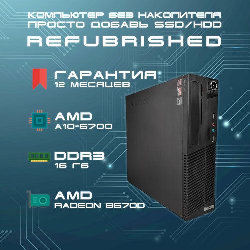 Найти - Системный блок Компьютер Lenovo ThinkCentre M79 SFF (AMD A10-6700 (3.7 ГГц), RAM 16 ГБ, без HDD, AMD HD8670D, без ОС), черный