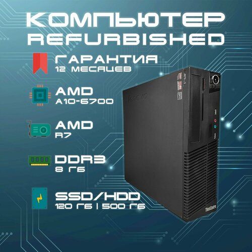 Найти - Системный блок Компьютер Lenovo ThinkCentre M79 SFF (AMD A10-6700 (3.7 ГГц), RAM 8 ГБ, SSD 120 ГБ, HDD 500Gb, AMD HD8670D, Windows), черный