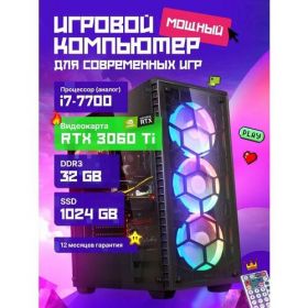 Найти - Intel Системный блок Игровой компьютер (Intel Core i7-7700, RAM 32 ГБ, SSD 1024 ГБ, NVIDIA GeForce RTX 3060 Ti (8 Гб), Windows), черный