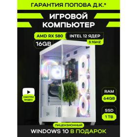 Игровой ПК R-64 - мощный и доступный системный блок для игр и работы в тяжёлых программах с премиальной гарантией*. Установлен Windows 10 Pro и необходимые драйвера. Компьютер готов к работе прямо из коробки, остаётся лишь подключить монитор (с DisplayPort, HDMI или DVI-D портом), клавиатуру и мышь.