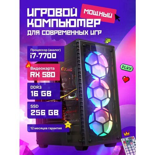 Найти - Игровой компьютер Intel Системный блок (Intel Core i7-7700, RAM 16 ГБ, SSD 256 ГБ, AMD Radeon RX 580 (8 Гб), Windows), черный