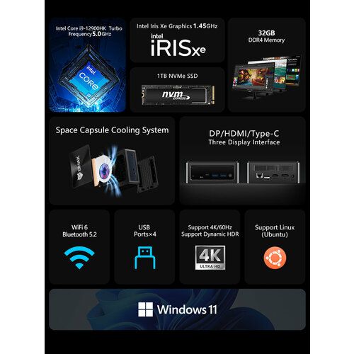 Найти - Мини ПК BMAX B9 POWER Intel® Core™ i9-12900HK 32G/1T SSD Windows 11