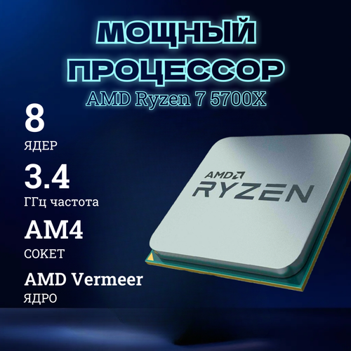 Основой компьютера является процессор AMD Ryzen 7 5700X с 8 ядрами и частотой 3400 МГц. Это обеспечивает высокую производительность и быстродействие при выполнении различных задач.