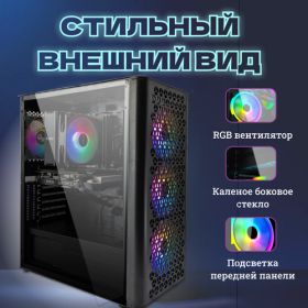 Корпус системного блока выполнен в черном цвете и имеет Midi-Tower форму. Это обеспечивает достаточное пространство для вентиляции и охлаждения компонентов, а также стильный внешний вид.