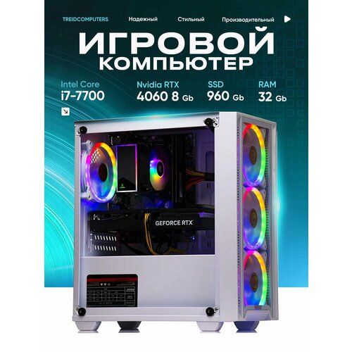Системный блок TREIDCOMPUTERS Intel core i7 7700 3,6 (4 ядра)/ 32 Gb DDR4/ SSD 960 / GeForce RTX 4060 8 Gb - это мощный игровой ПК, который предназначен для тех, кто любит играть в игры высокого качества. Этот компьютер оснащен процессором Intel Core i7-7700, который обеспечивает быструю работу и высокую производительность при выполнении сложных задач.