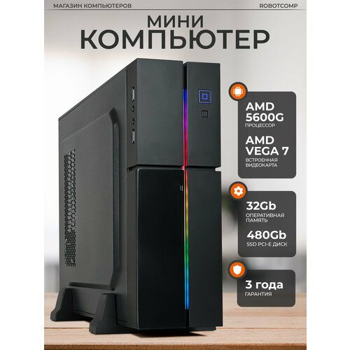 Найти - Игровой компьютер Robotcomp Аллигатор Мини 2.0 V2 Plus AMD Ryzen 5 5600G 3.9-4.4 GHz 6 ядер 12 потоков / 32GB ( 2 x 16 ) DDR4 / 480Gb PCI-E SSD / Video Radeon VEGA 7 CORE / A520M / 500W