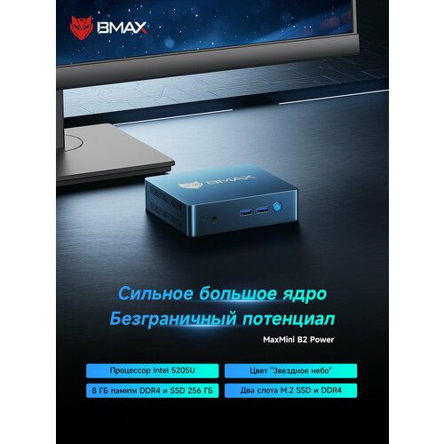 Найти - Mini Pc BMAX B2 POWER, Intel Celeron Processor 5205U, RAM 8 ГБ, SSD 256 ГБ, Intel UHD Graphics , Windows 11 Pro, Чёрный