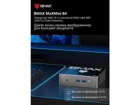 Мини ПК BMAX B4 MINI, Intel N95, RAM 12ГБ DDR5, ROM 256 ГБ SSD, Intel UHD Graphics, Windows 11 Pro, Чёрный 4616248434