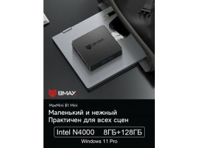 Мини ПК BMAX B1 mini, Intel Gemini Lake N4000, RAM 8 ГБ, ROM 128 ГБ, Intel UHD Graphics 600, Windows 11 Pro, Чёрный 4548218881