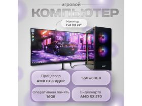 Компьютер AMD FX-8320e, 16 ГБ, RX 570 4 ГБ, SSD 480 ГБ, Full HD монитор 24 — полный комплект 4369334604
