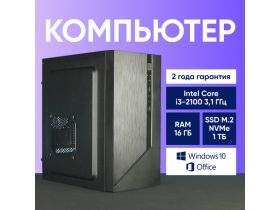 Системный блок Компьютер Офисный ПК (Intel Core i3-2100 (3.1 ГГц), RAM 16 ГБ, SSD 1000 ГБ, Windows 10), чёрный 103636511229