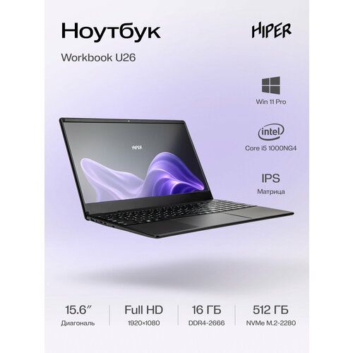Ноутбук 15.6 IPS FHD HIPER WORKBOOK black (Core i3 1000NG4/16Gb/512Gb SSD/VGA int/W11Pro (U26-15FII3100R16S5WPG) 102609919263