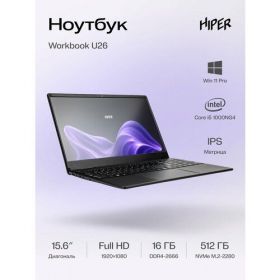 Ноутбук 15.6 IPS FHD HIPER WORKBOOK black (Core i3 1000NG4/16Gb/512Gb SSD/VGA int/W11Pro (U26-15FII3100R16S5WPG)