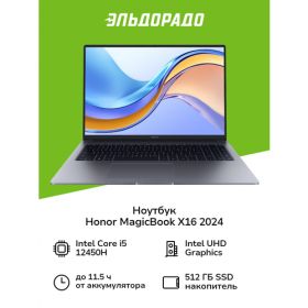 Найти - Ноутбук HONOR MagicBook X16 2024/16/Core i5-12450H/16/512/noOS/Space Gray