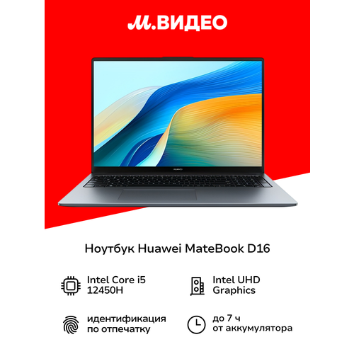 Найти - Ноутбук HUAWEI MateBook D 16 2024/16/Core i5-12450H/16/1TB/Win/Space Gray (53013YJF)