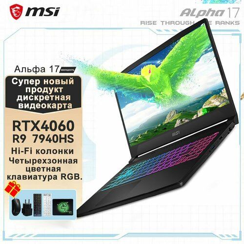 Высокопроизводительный игровой ноутбук MSI Alpha 15 40-й серии, полное энергопотребление 17,3-дюймовый, 2,5K, 240 Гц, высокая кисть, экран с широкой цветовой гаммой, высокопроизводительный игровой ноутбук Thunder Shadow 15 Youth Edition丨R9-7940HS RTX4060, до 64 ГБ памяти, твердотельный накопитель 4 ТБ
