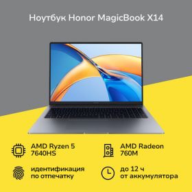 Найти - Ноутбук HONOR MagicBook X14 2024/14/R5 -7640HS/16/512/DOS/Space Gray (5301AKAU)