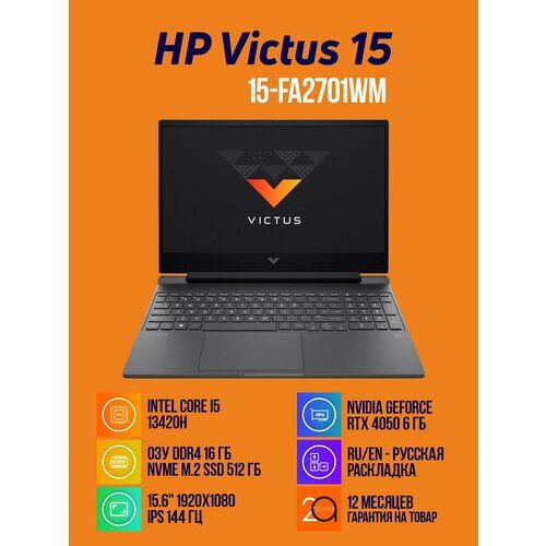 Найти - Игровой ноутбук HP Victus 15-FA2701WM Core i5-13420H ,16Gb, SSD 512Gb, RTX4050 6Gb, 15.6 144Гц, русская клавиатура