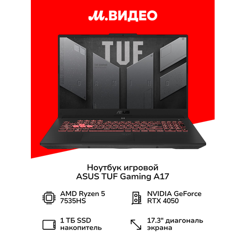 Найти - Ноутбук игровой ASUS TUF Gaming A17 FA707NU-HX071/17.3/Ryzen 5-7535HS/16/1TB/RTX 4050/NoOS/Grey (90NR0EF5-M00440)
