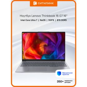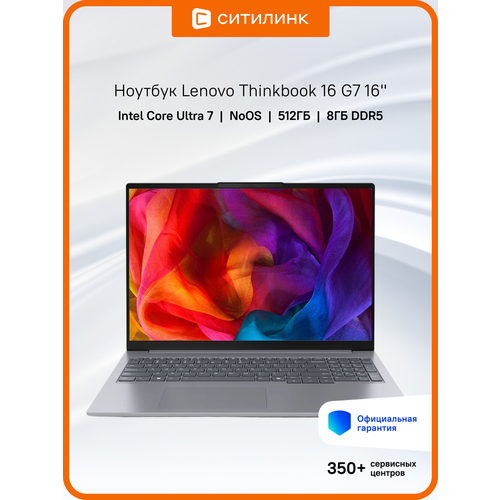 Найти - Ноутбук Lenovo Thinkbook 16 G7 IML 16, 2024, IPS, Intel Core Ultra 7 155H 1.4ГГц, 16-ядерный, 8ГБ DDR5, 512ГБ SSD, Intel Arc, без операционной системы, серый [21ms000ngq]