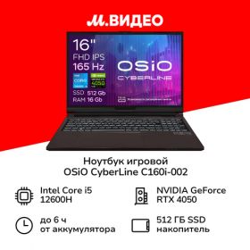 Ноутбук игровой OSIO CyberLine C160i-002 16, 2024, IPS, Intel Core i5 12600H 2.7ГГц, 12-ядерный, 16ГБ DDR4, 512ГБ SSD, NVIDIA GeForce RTX 4050 для ноутбуков - 6 ГБ, без операционной системы, коричневый