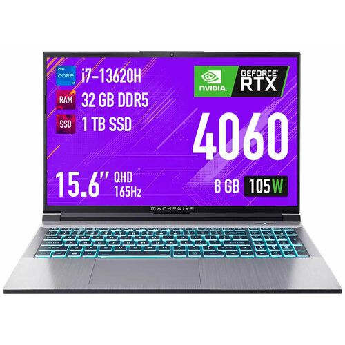 15.6" Ноутбук Machenike L15 Star 2K XL серого цвета оснащен IPS экраном 15.6 дюймов с разрешением 2560x1440 пикселей. Изображения получается яркими, резкими и без искажений. За быстродействие компьютера отвечает процессор Intel Core i7-13620H с 10 ядрами, 32 ГБ оперативной памяти и SSD на 1 Тб. Встроенная видеокарта Intel UHD Graphics увеличивает продолжительность автономной работы устройства. Дискретная видеокарта GeForce RTX 4060 для ноутбуков необходима для гейминга, фото- и видеоредакторов.